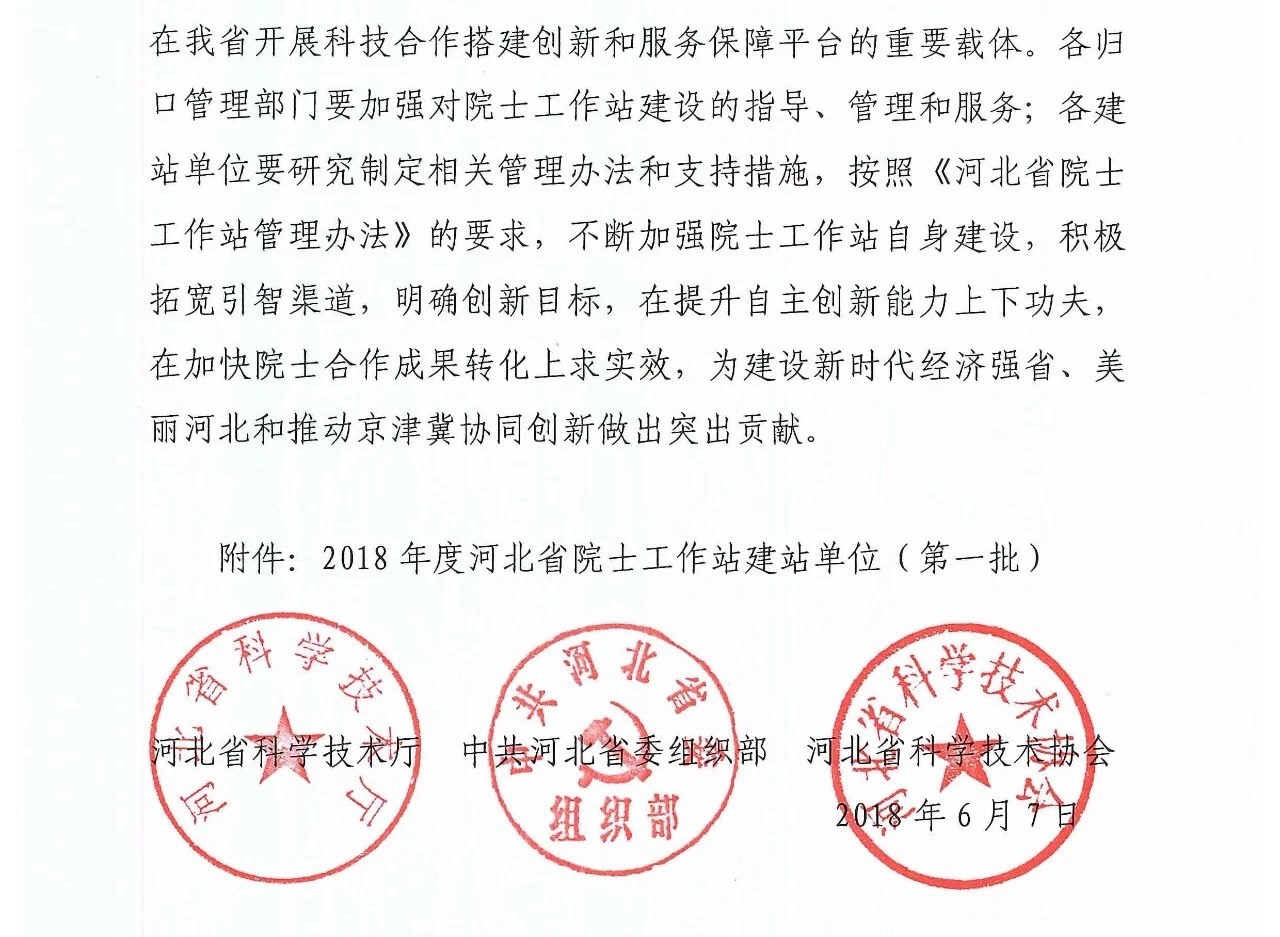 河北省為了推動科技英才“雙百雙千”工程,吸引國內外高端智力參與我省經濟建設,經省科技廳、省委組織部、省科協一致決定設立院士工作站。2018年僅有14個單位入圍,其中就包括吳橋縣河北藝能鍋爐有限公司。